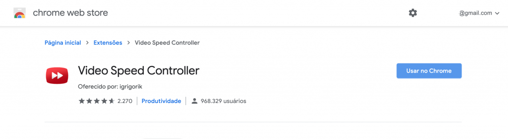 Para usar essa extensão é só clicar no link: https://chrome.google.com/webstore/detail/video-speed-controller/nffaoalbilbmmfgbnbgppjihopabppdk