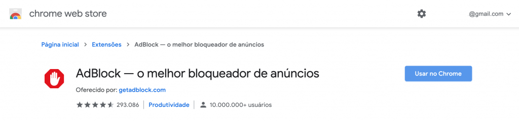 Recomendo usar no seu computador de trabalho porque vai te manter com o mínimo de distrações possíveis. Ah, ele também serve para sites e blogs. Para adicionar ao seu navegador é só clicar nesse link: https://chrome.google.com/webstore/detail/adblock-%E2%80%94-best-ad-blocker/gighmmpiobklfepjocnamgkkbiglidom
