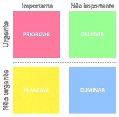 NÃO IMPORTANTE: são aquelas que são mais fáceis de me livrar porque não precisa de tanta atenção como as demais, dependendo da urgência posso delegar ou até eliminar da minha lista.