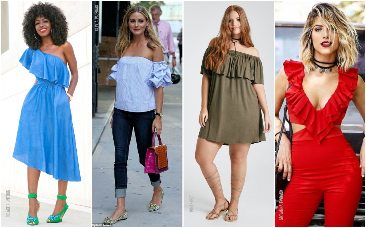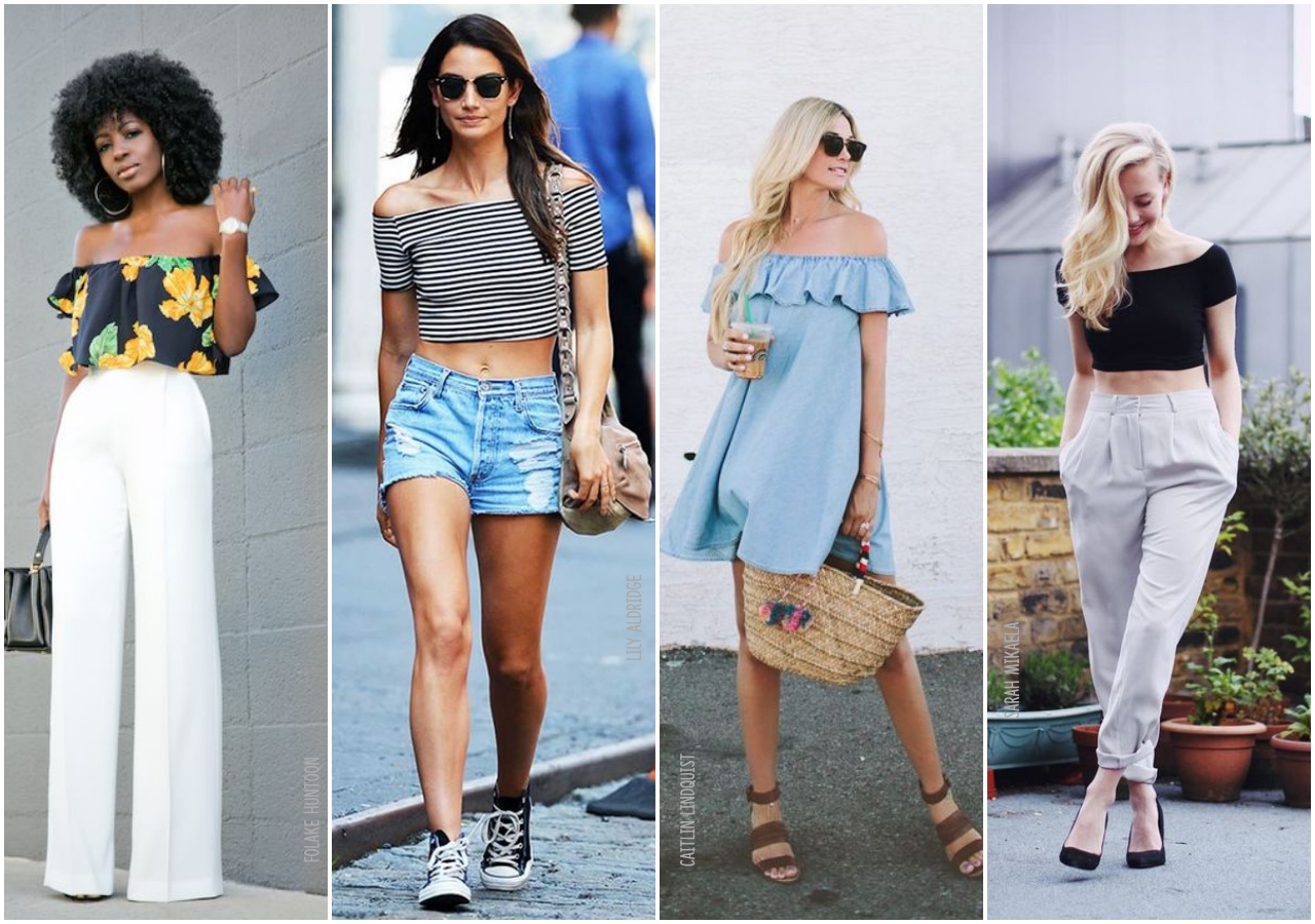 A primeira vez que falamos do decote ombro a ombro foi em 2015, e a tendência segue firme e forte esse ano. Seja em vestidos, batas, croppeds, com ou sem babados, esse decote é a cara do verão.