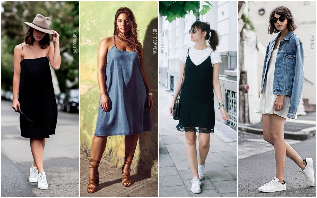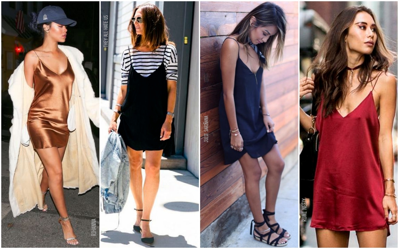 Com ares de lingerie, o slip dress caiu no gosto e virou tendência. E a melhor palavra para definir esse vestido é: versátil. Fica super sexy com um salto, mas funciona muito bem com tênis. Caso queira enfrentar o friozinho de fim de tarde que às vezes dá as caras no verão, é só usar o slip dress por cima de uma camiseta ou com um jaqueta jeans.