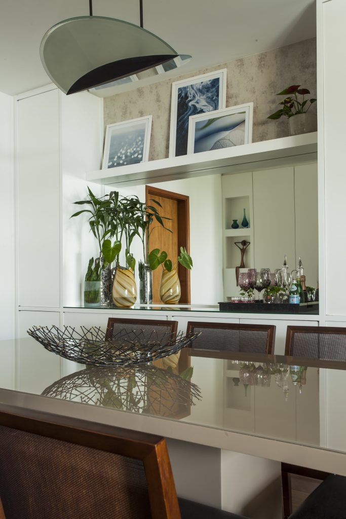 Uma vez que o estilo, formato e o tamanho estão decididos, é hora de pensar em como decorar. Indagações como os tipos de copos, taças, e garrafas, assim como a quantidade, precisam estar em mente. “Eu, por exemplo, gosto muito de uma bela e grande bandeja com garrafas de formatos variados e copos que revelam histórias. Esse cuidado se traduz em personalidade”, finaliza Karina.