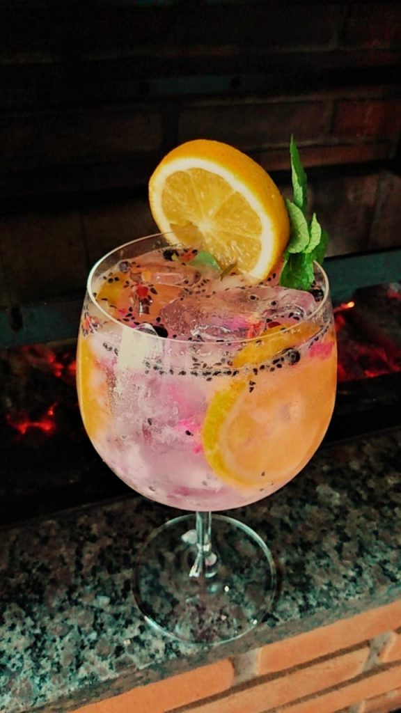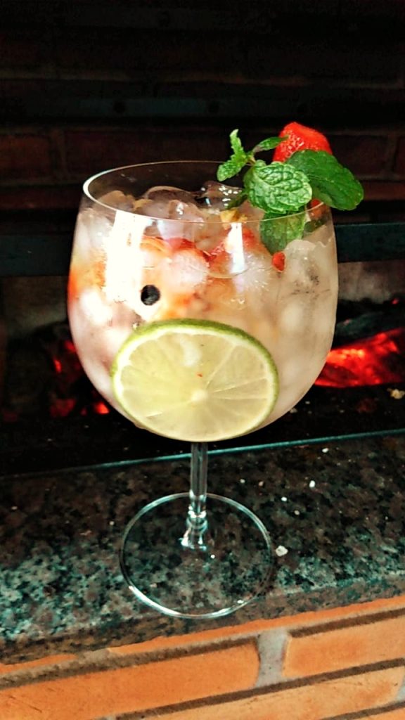 A base da bebida de pimenta e cardamomo é muito saborosa, conta também com gin, água com gás e a geleia de cereja que adiciona a quantidade perfeita de frutas para equilibrar tudo isso.