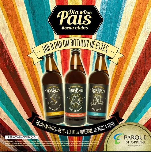 Que tal brindar o Dia dos Pais degustando algumas das mais apreciadas cervejas artesanais do Estado? Esta é a surpresa que o Parque Shopping preparou para celebrar junto com todos os seus clientes essa data tão especial. Em parceria com a cervejaria Hop Bros, empresa alagoana considerada uma das referências na produção de cervejas especiais, a promoção “Dia dos Pais #SemRótulos” oferecerá, no formato “Troque e Ganhe”, três das mais famosas cervejas da Hop Bros: Helles (rótulo azul), mais leve; American Pale Ale (rótulo vermelho), aromática com notas de frutas tropicais; e Hop Blond (rótulo amarelo), com corpo maltado e levemente lupulada.