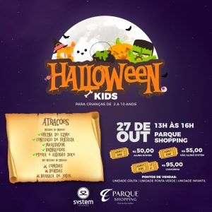 Tradição há mais de 10 anos no estado, o ‘Halloween da System’ muda de casa e prepara sua maior edição no Parque Shopping. No dia 27 de outubro, no Piso L3, a famosa festa americana do Dia das Bruxas será realizada em um espaço temático e repleto de atrações musicais, barraca de jogos, comidas e bebidas, com toda a segurança do shopping.