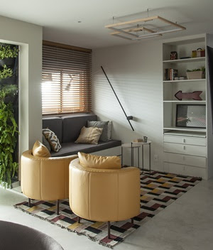 Responsável por trazer conforto e a sensação de amplitude para os seus moradores, a integração é um conceito a ser incluído em plantas compactas. Para o casal de moradores, a profissional eliminou um dormitório para deixar a sala de estar mais espaçosa, fluída e pronta para receber os convidados.