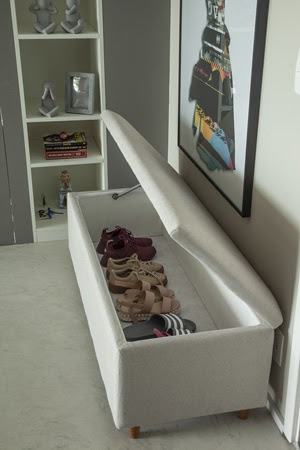Nesses últimos dois anos, mudamos muitos hábitos de vida, incluindo a retirada dos sapatos logo que entramos em casa. Aderindo esse costume – já presente em países orientais –, a arquiteta Cristiane Schiavoni evoca a versatilidade do mobiliário: o banco, logo na entrada do imóvel, é muito mais que um assento para calçar ou tirar os sapatos: dentro dele, o baú foi o espaço que eleito para deixá-los guardados. “E pensando nas bolsas, um pendurador resolve tanto a questão deles, como de quem chegar para visitá-los”, adiciona.