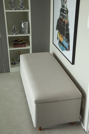 Junto com a parte gourmet, os moradores também queriam desfrutar de um espaço de contemplação na varanda. E ao invés de colocar poltronas, que daria um ar mais formal, a arquiteta sugeriu a inserção da marcenaria de um futon, fornecendo um ar mais descontraído, confortável e ainda, assume a função de esconder a condensadora do ar-condicionado.